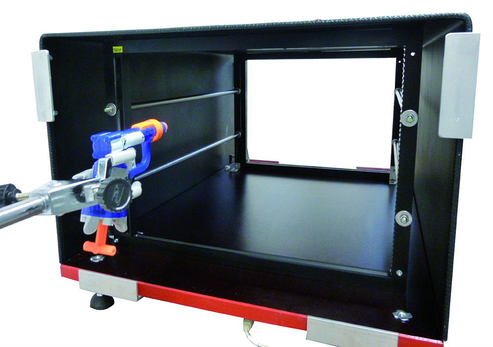 Geschossspielzeuge nach EN71-1pkt 8.24 Tischgerät mit zwei high speed Messrahmen